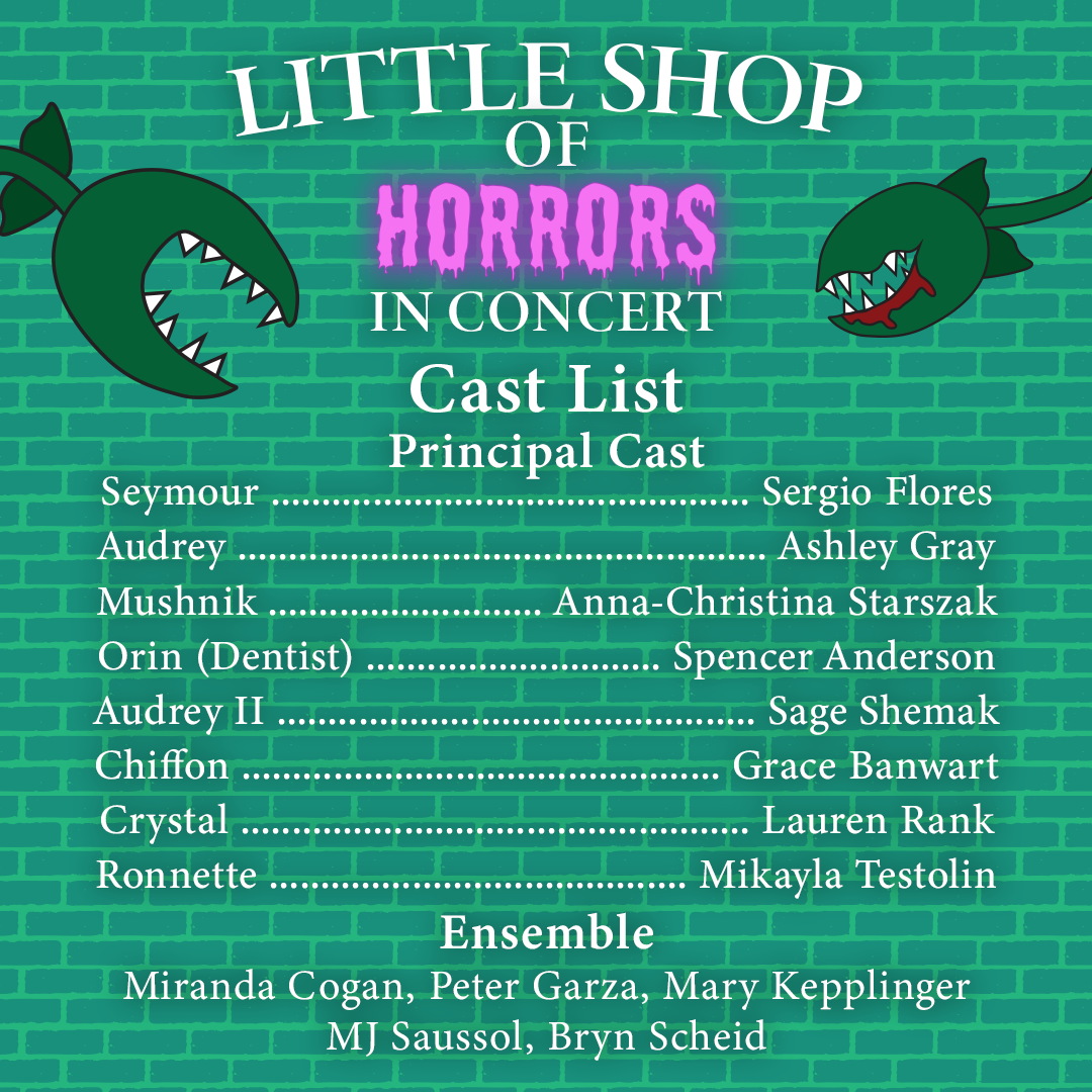 In 2023 I took lead to create the social media and print graphics for the production LITTLE SHOP OF HORRORS In Concert for the Otteson Theatre’s public relations team. For this project I was tasked with creating graphics for both print and social media use. These graphics included Instagram posts, programs, posters, and banners.
